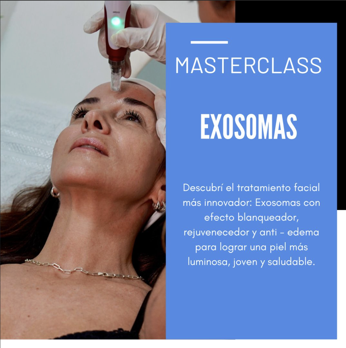 Masterclass sobre la innovación Nº1 en biotecnología regenerativa. Los exosomas reparan y regeneran células, estimulan colágeno y elastina, mejorando textura, luminosidad y signos de envejecimiento. Encuentro teórico-práctico con resultados visibles y duraderos.